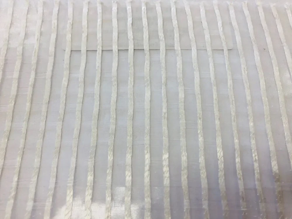 Linear, dramatic in appearance with a striking shimmering stripe, the pattern runs vertically through this lovely voile. 4 colours, all with a glistening weave. Suitable for drapery only.